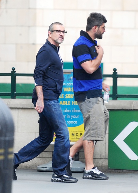 George Michael i jego chlopak Fadi Fawaz wracaja ze spaceru z psami, Londyn