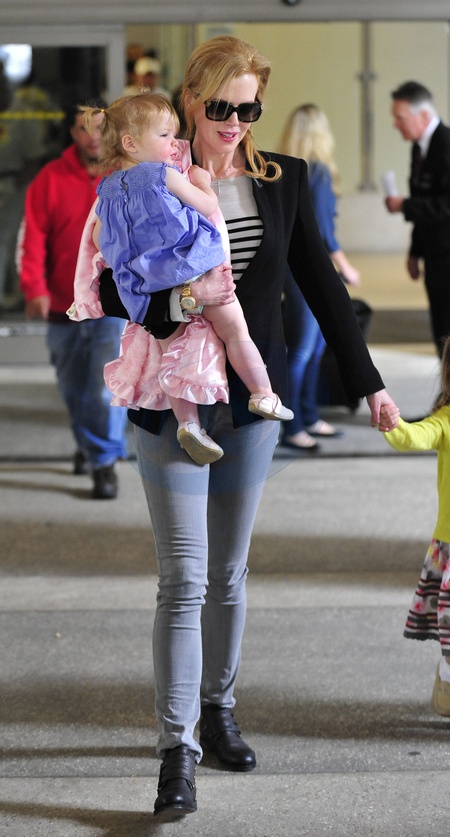 Nicole Kidman z rodzina na lotnisku, Los Angeles