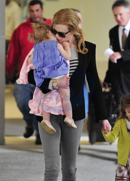 Nicole Kidman z rodzina na lotnisku, Los Angeles