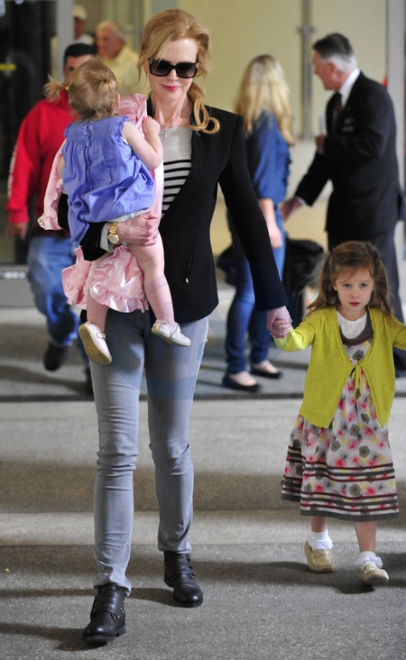 Nicole Kidman z rodzina na lotnisku, Los Angeles
