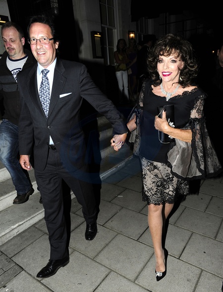 Percy Gibson i Joan Collins ida na przyjecie urodzinowe, Londyn