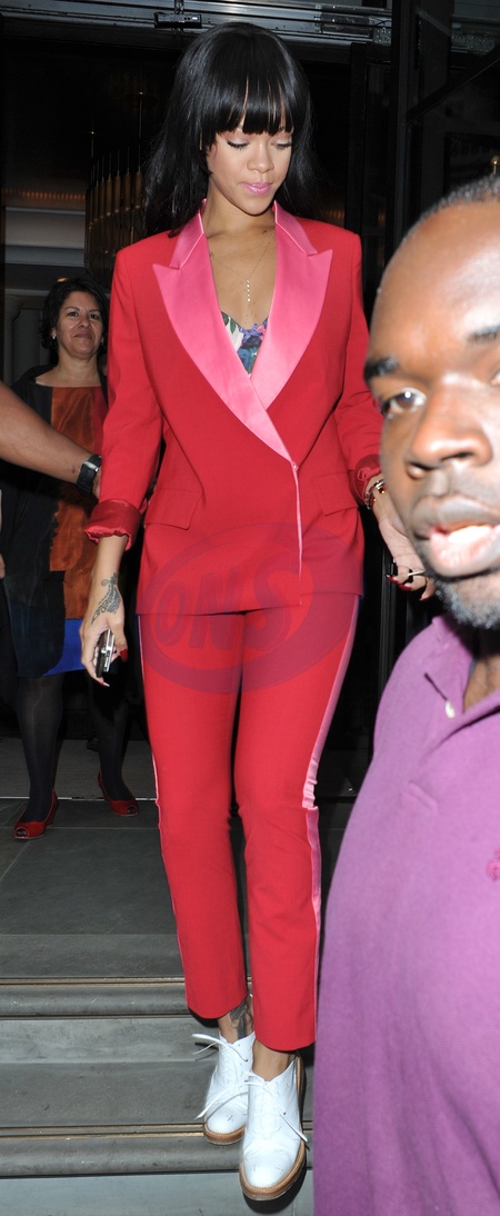 Rihanna w czerwonym garniturze Michaela Korsa, Londyn