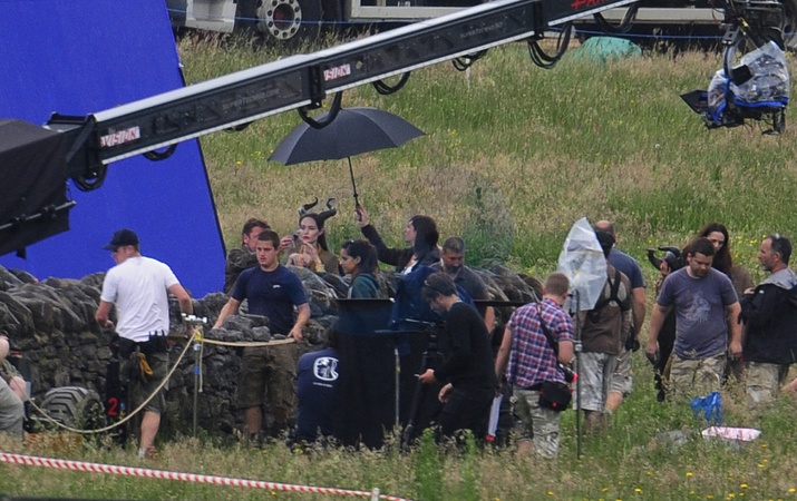 Angelina Jolie w rogach na planie zdjeciowym "Maleficent", Buckinghamshire