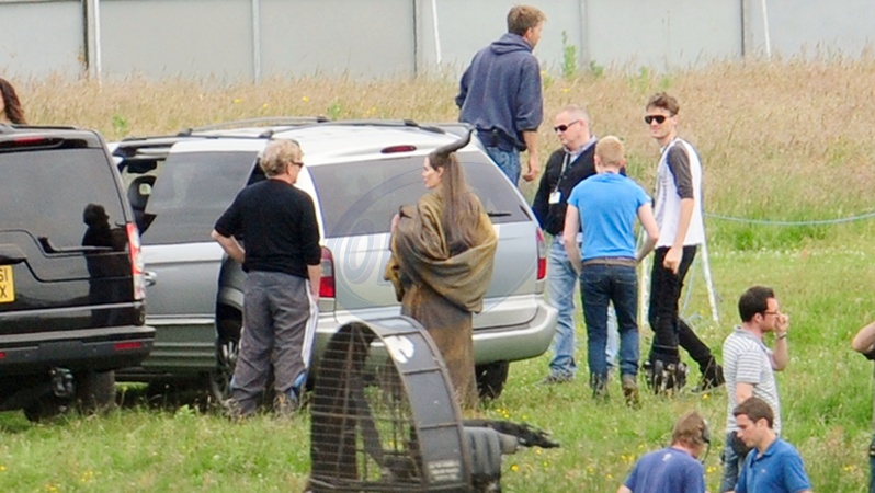 Angelina Jolie w rogach na planie zdjeciowym "Maleficent", Buckinghamshire