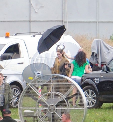 Angelina Jolie w rogach na planie zdjeciowym "Maleficent", Buckinghamshire