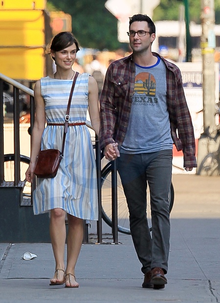 Keira Knightley i Adam Levine na planie filmu Can A Song Save Your Life, Nowy Jork