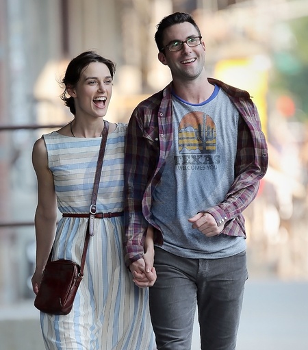 Keira Knightley i Adam Levine na planie filmu Can A Song Save Your Life, Nowy Jork