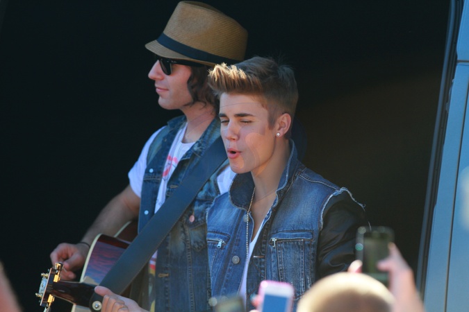 Justin Bieber spiewa dla fanow z samochodu, Los Angeles
