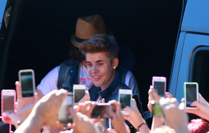 Justin Bieber spiewa dla fanow z samochodu, Los Angeles