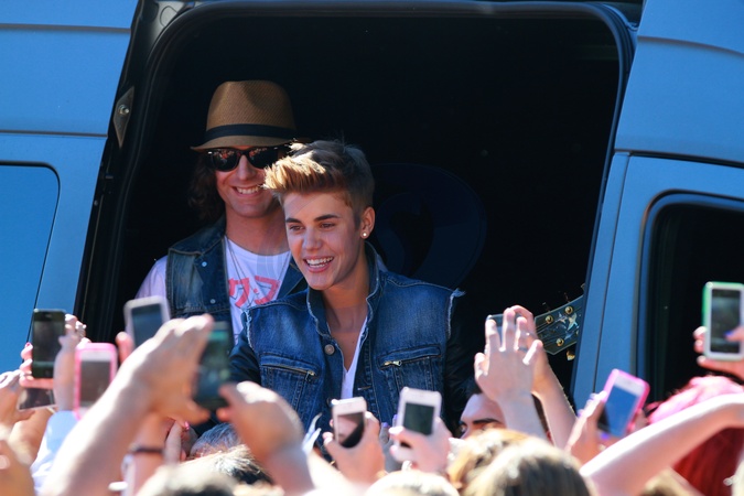 Justin Bieber spiewa dla fanow z samochodu, Los Angeles