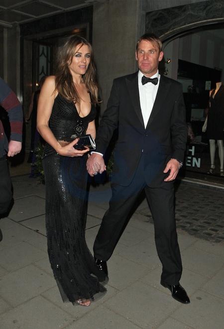 Liz Hurley i Shane Warne wracaja z imprezy, Londyn