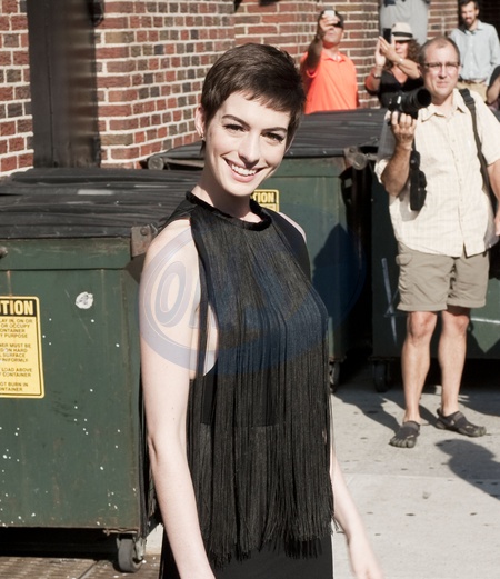 Anne Hathaway przybyla na Late Show w Nowym Jorku