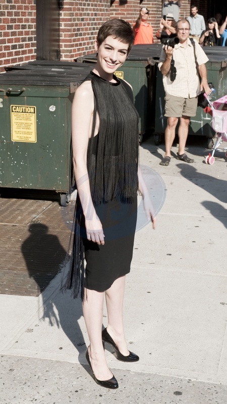 Anne Hathaway przybyla na Late Show w Nowym Jorku