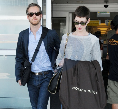 Anne Hathaway z narzeczonym na lotnisku JFK w Nowym Jorku
