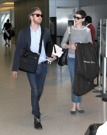Anne Hathaway z narzeczonym na lotnisku JFK w Nowym Jorku