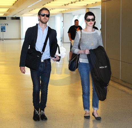 Anne Hathaway z narzeczonym na lotnisku JFK w Nowym Jorku