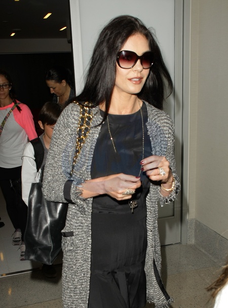 Catherine Zeta Jones z dziecmi na lotnisku