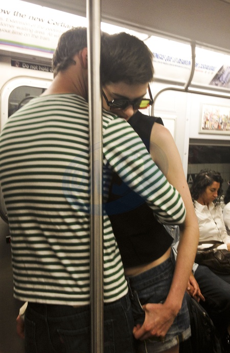 Anne Hathaway caluje sie z chlopakiem w metrze, Nowy Jork