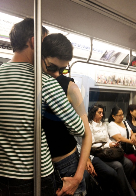 Anne Hathaway caluje sie z chlopakiem w metrze, Nowy Jork