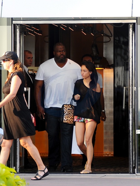 Dziewczyna Chrisa Browna - Karrueche Tran z ochroniarzem na zakupach, Cannes