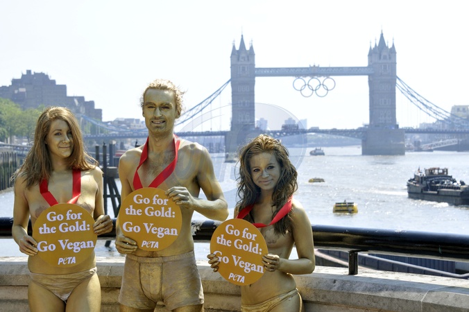 Nadzy czlonkowie PETA czekaja na olimpiade, Londyn