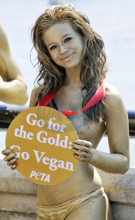 Nadzy czlonkowie PETA czekaja na olimpiade, Londyn