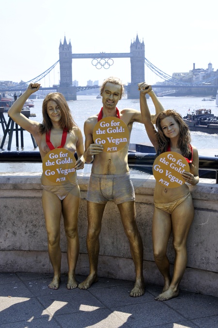 Nadzy czlonkowie PETA czekaja na olimpiade, Londyn