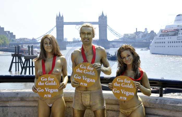 Nadzy czlonkowie PETA czekaja na olimpiade, Londyn