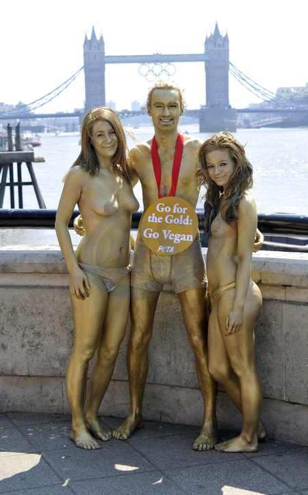 Nadzy czlonkowie PETA czekaja na olimpiade, Londyn