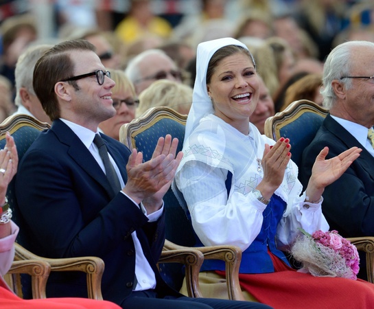 Krolowa Sylwia i jej corka ksiezniczka Victoria w ludowych strojach, Borgholm, Oeland