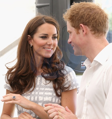 Ksiezna Kate, ksiaze William i ksiaze Harry podczas wizyty w collegu, Londyn