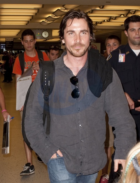 Christian Bale z rodzina na lotnisku, Nowy Jork