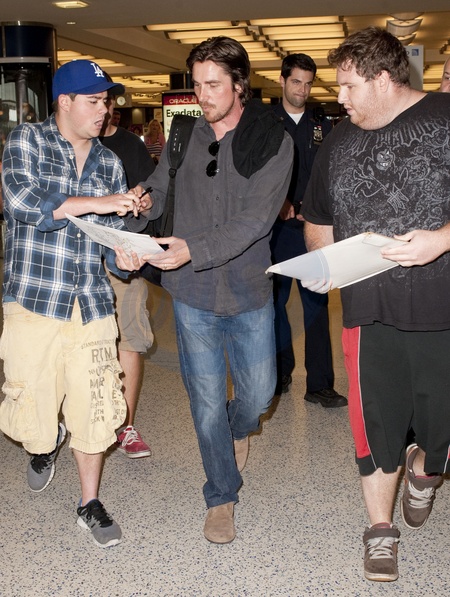 Christian Bale z rodzina na lotnisku, Nowy Jork