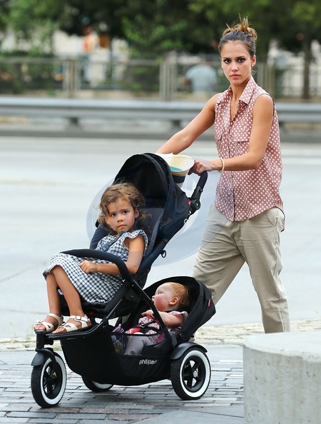 Jessica Alba z corkami idzie do parku w Nowym Jorku