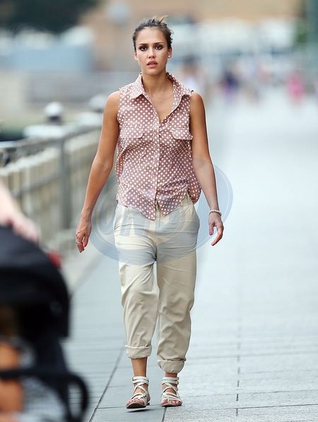 Jessica Alba z corkami idzie do parku w Nowym Jorku