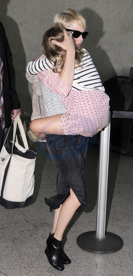 Michelle Williams z corka i chlopakiem na lotnisku w Nowym Jorku