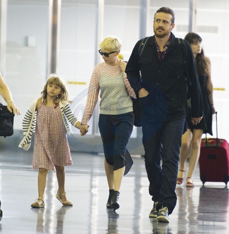 Michelle Williams z corka i chlopakiem na lotnisku w Nowym Jorku