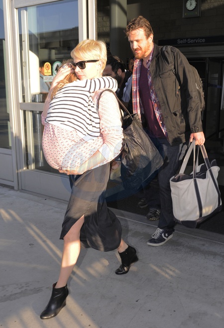 Michelle Williams z corka i chlopakiem na lotnisku w Nowym Jorku
