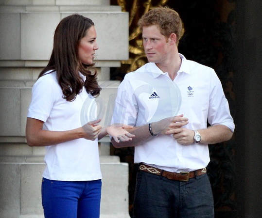 Ksiaze William z zona Kate i ksiaze Harry czekaja na ogien olimpijski, Londyn