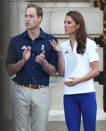 Ksiaze William z zona Kate i ksiaze Harry czekaja na ogien olimpijski, Londyn