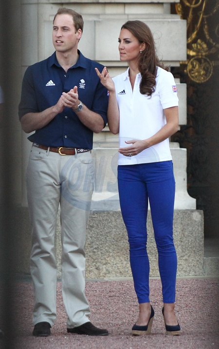 Ksiaze William z zona Kate i ksiaze Harry czekaja na ogien olimpijski, Londyn