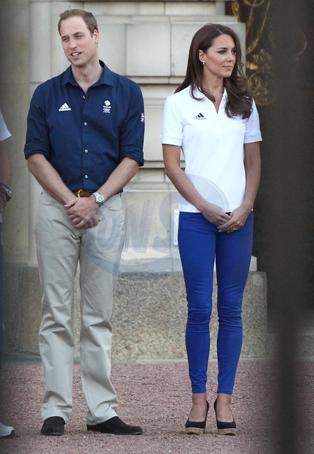 Ksiaze William z zona Kate i ksiaze Harry czekaja na ogien olimpijski, Londyn