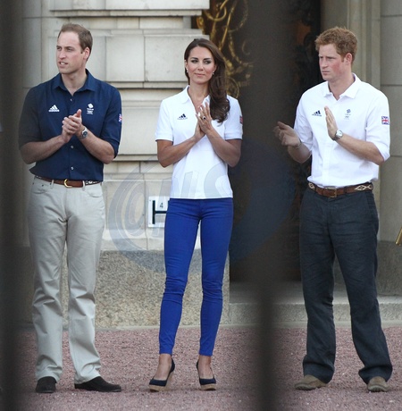 Ksiaze William z zona Kate i ksiaze Harry czekaja na ogien olimpijski, Londyn