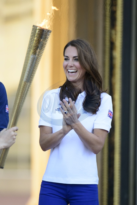 Ksiaze William z zona Kate i ksiaze Harry czekaja na ogien olimpijski, Londyn