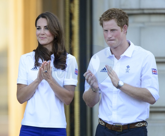 Ksiaze William z zona Kate i ksiaze Harry czekaja na ogien olimpijski, Londyn