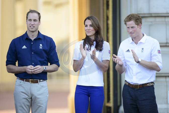 Ksiaze William z zona Kate i ksiaze Harry czekaja na ogien olimpijski, Londyn