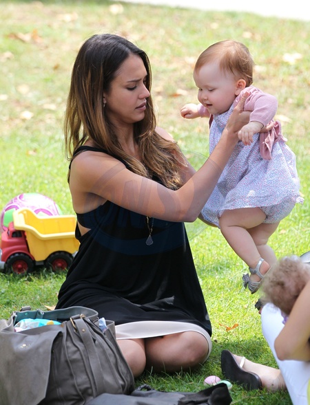 Jessica Alba z rodzina w parku, Los Angeles