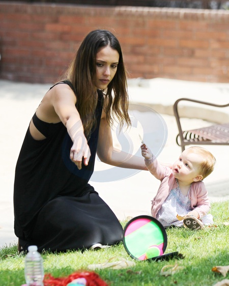 Jessica Alba z rodzina w parku, Los Angeles