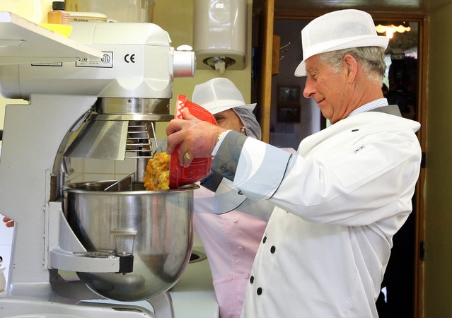 Ksiaze Karol podczas wizyty na farmie The Proof of the Pudding w Alnwick