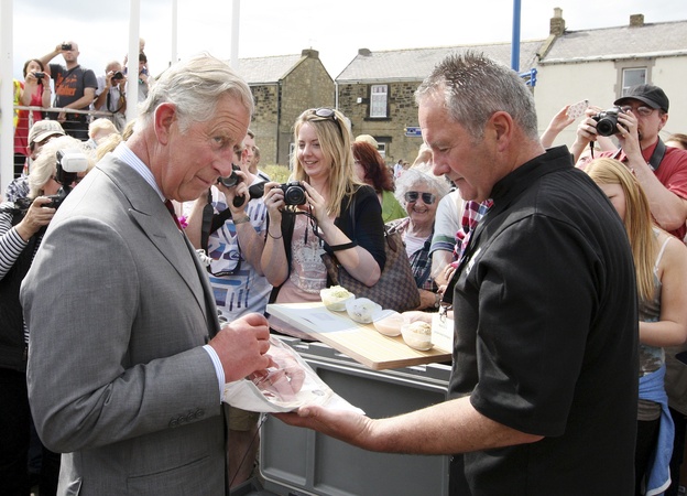 Ksiaze Karol podczas wizyty na farmie The Proof of the Pudding w Alnwick